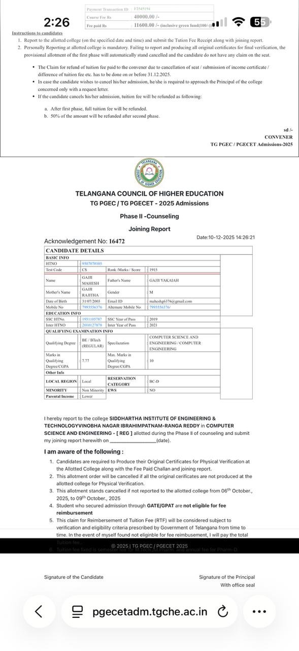 | 2 | 207R1A66G7 | Sampath Goud Pottola | M.S | Northumbria University,Newcastle,UK | View |